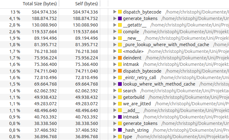 As mentioned in the introduction, time-based sampling ‘hits’ functions with high runtime, and allocation-sampling ‘hits’ functions allocating much memory. But are those always different functions? The answer is: sometimes. There can be functions allocating lots of memory, that do not have a (relative) high runtime.